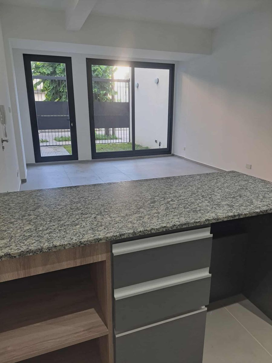 MONOAMBIENTE PLANTA BAJA AL FRENTE A ESTRENA BAÑO BARRA DESAYUNADORA Y JARDIN PROPIO PODRIA SER CON COCHERA OPCIONAL APARTE